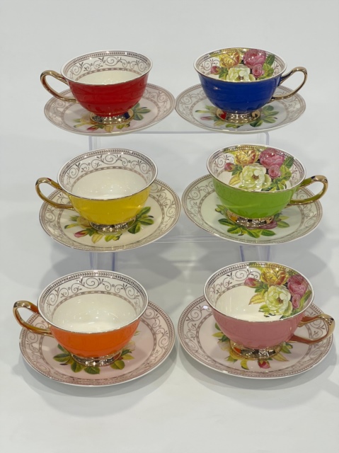 PORS.6LI FİNCAN TK. AYAKLI (FLOWER 3 RENK.)